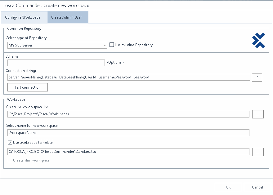 | Use Existing Repositry | Uncheck (create new workspace, and new repository in msssql) |