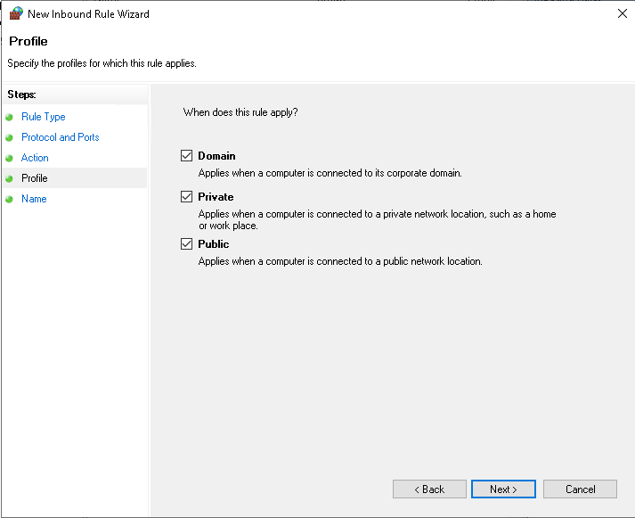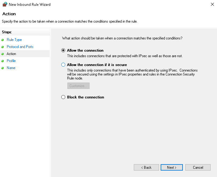 Allow the connection if not already selected. This permits the ports to be opened on the machine