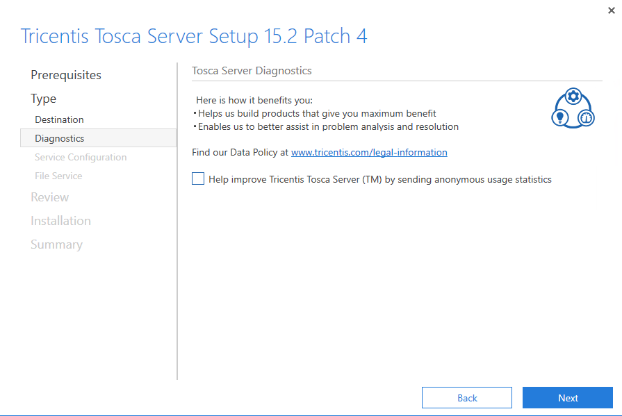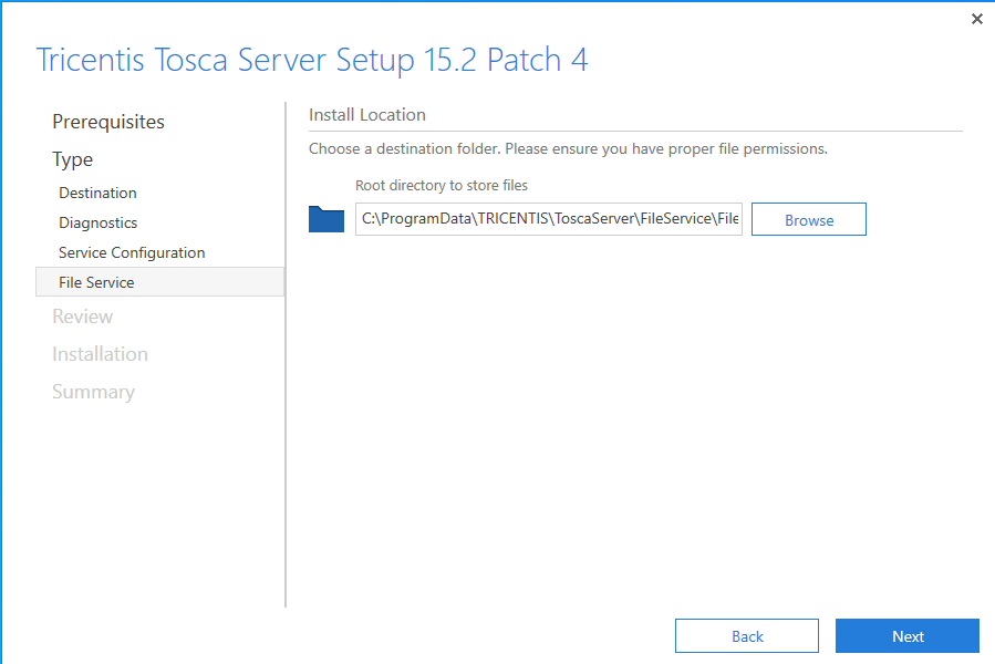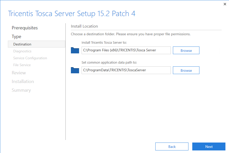 After the type of installation we will be provided the Tosca Server Destination details, this is where you would like to store the Tosca Server install. Click next to proceed once happy with the destination